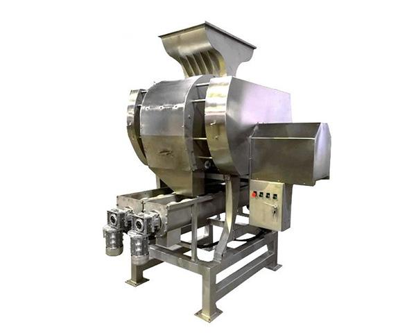 多功能压榨机螺旋主轴的旋转方向从进料斗向渣槽方向看去,为顺时针方向。质料参加进料斗中,在螺旋的推动下受压,其压榨的汁液经过过滤网流入底部的盛汁器,而废料则经过螺旋及调压的锥形部分之间构成的环状空地排出,调压头沿轴向的移动可调整空地的巨细。用于顺时针(从设备的出渣槽向进料斗端看滚动手轮轴承座时,调压头向左,空地即缩小,反之则空地变大。)改动空地的巨细,即调整排渣的阻力。即可改动出渣率,但假如空地过小,在强力揉捏下,部分渣的颗粒会和汁一同经过过滤网被挤出,虽然出汁添加,但汁的质量相对下降,空地的巨细应视用户详细工艺要求而定
